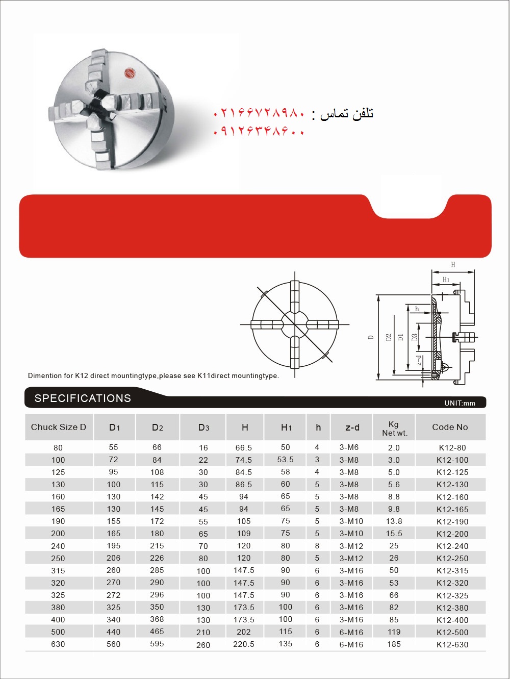 4 JAW CHUCK K12 80
